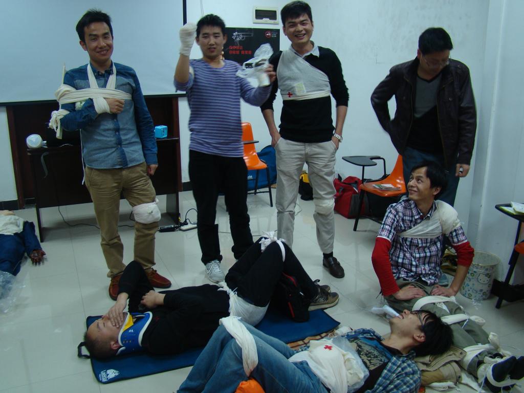 培训中,学员们表示中级班比初级班学到理论知识与技能有很大的不同,除基本救护知识、技能和灾害逃生外,还讲述了突发事故的处理,常见急症的处理,并模拟事故发生现场,对学员分组进行了综合情况救护演练。学员们热情很高,在模拟事故发生时,呼救语言洪亮、清晰,止血、包扎手法熟练,伤口固定松紧适度,搬运平稳,展现出了团结协作的团队精神。