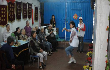 ??????? 宣誓结束后,在音乐的伴奏下,志愿者为老人表演了精彩的文艺节目,包括演唱红歌、表演相声、表演太极拳、演唱黄梅戏和京剧选段等等,老人们都看得津津有味。