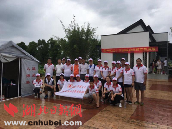 湖北日报网消息(记者 魏亚春 实习生 金玄明)7月9日,蔡甸区红十字会组织30多位志愿者在蔡甸金龙水寨进行“水上遇险”综合救援演练,在武汉国仁应急管理技术公司的支持下,完成水面救援、翻船自救、空中侦察、孤岛救援、紧急医疗、伤员转运及抢通道路等志愿者训练内容。